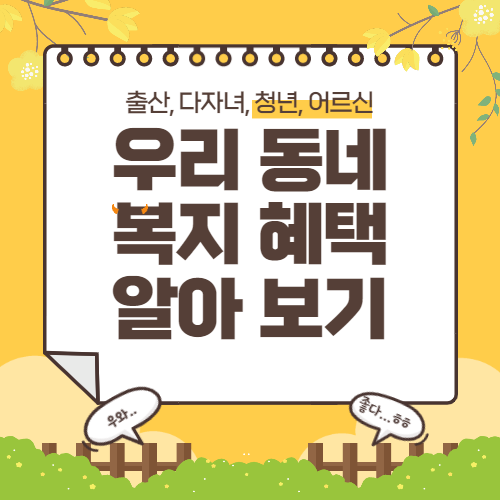 우리 동네 지역에서 받을 수 있는 복지 혜택들은 어떤 것들이 있을까요? 각 지역별로 제공되는 복지 혜택들이 다릅니다. 사실 복지는 자동으로 제공되는 것도 있지만 우리가 미리 알고 신청해야 받을 수 있는 것들도 많이 있습니다.