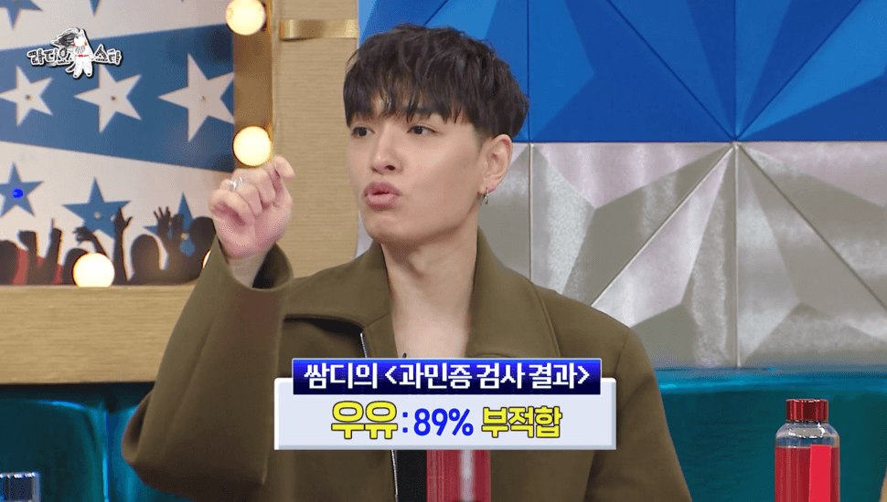 이날 쌈디는 음식물 과민증 검사 결과 우유가 자신의 체질에 부적합하다는 결과를 받고 우유가 들어간 음식을 피하면서 피부가 좋아졌다고 하기도 했습니다.