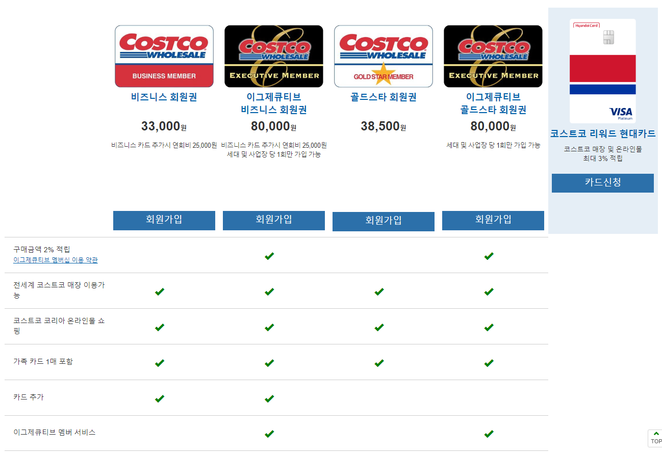 코스트코 회원권 유형